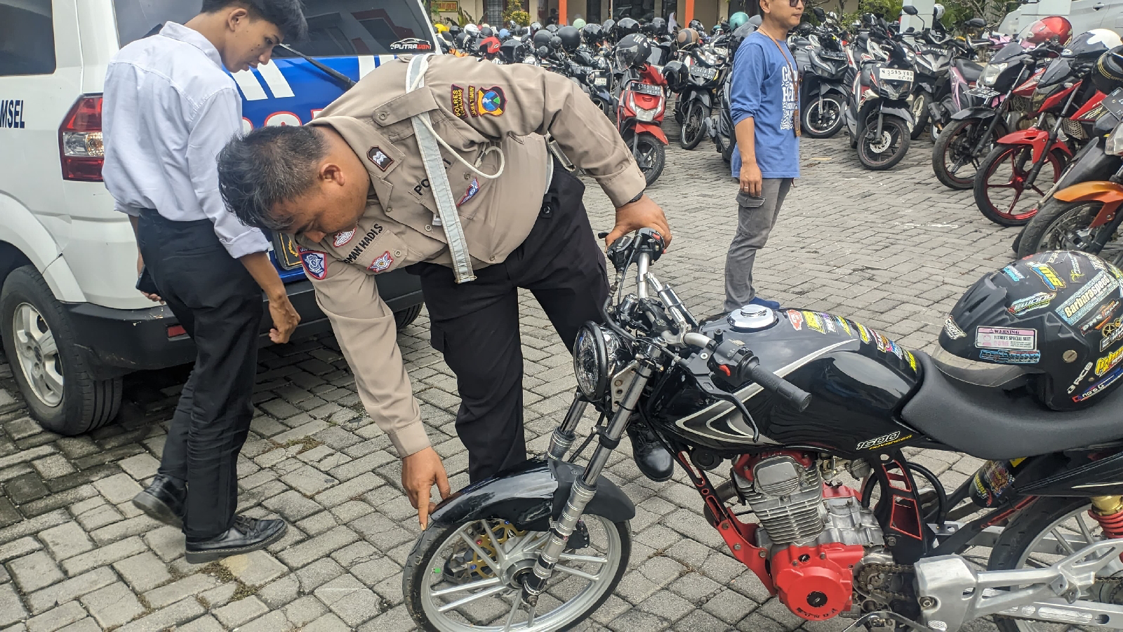 Razia yang digelar di SMK Negeri 2 Lumajang dan SMA PGRI Lumajang pada Selasa (17/12/2024) pagi berhasil mengamankan puluhan kendaraan. Sebanyak 48 sepeda motor kedapatan tidak memiliki spion, sementara 5 kendaraan lainnya menggunakan knalpot brong.