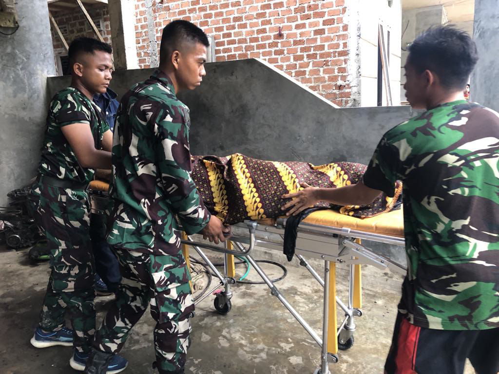 Dengan sigap Prajurit Tonkes Yonif 9 Marinir menggerakkan ambulan untuk segera mengevakuasi jenazah ke rumah sakit terdekat di dampingi oleh kepala desa Batu menyan Bapak syahruzi.